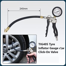Inflator with 5cm Dial Gauge c\w Click-On & Twin Hold-On Chuck