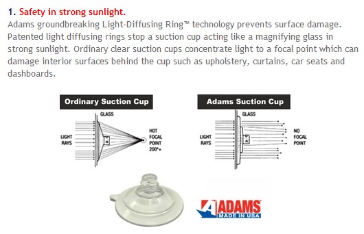 suction cup fixes securely to any clean, dry, slick, shiny,